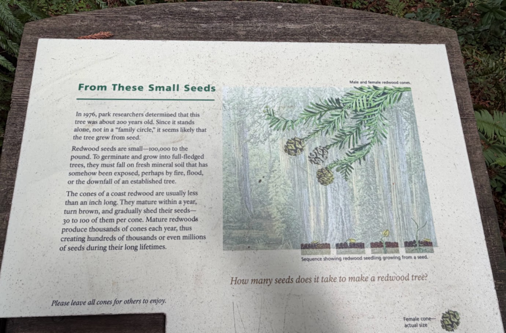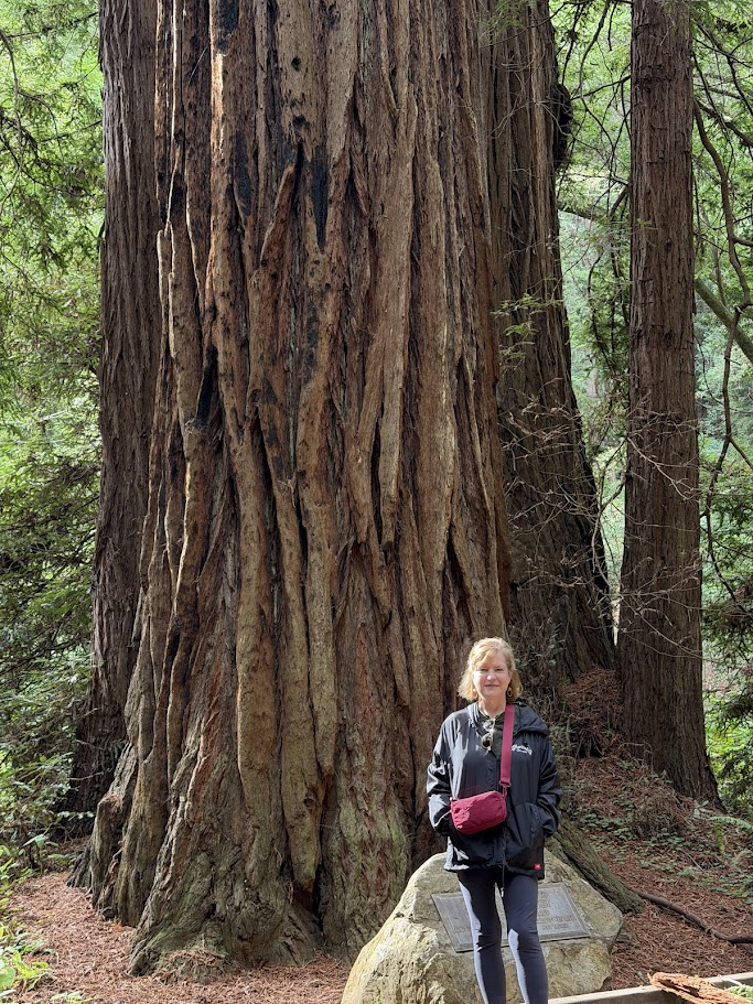 We did so much in CA, from a boat ride in San Francisco Bay (my first time seeing the Golden Gate Bridge and Alcatraz) it was fantastic – to visiting Muir Woods, a National Monument, right outside of San Francisco. For both of us, Muir Woods was a highlight of the trip – it’s just a magical place and felt very spiritual to me. They have signs in part of the park, asking you to be silent, in certain groves of trees. Being there makes you appreciate places like that where you can reconnect with nature and ground yourself. We learned a lot about the trees from a volunteer, of course. 🙂 Amazing how big they are and how small the pine cones are.