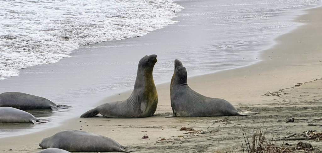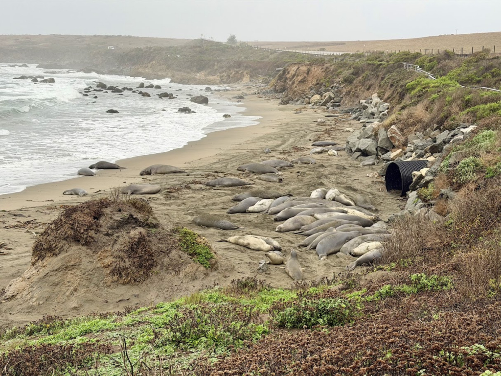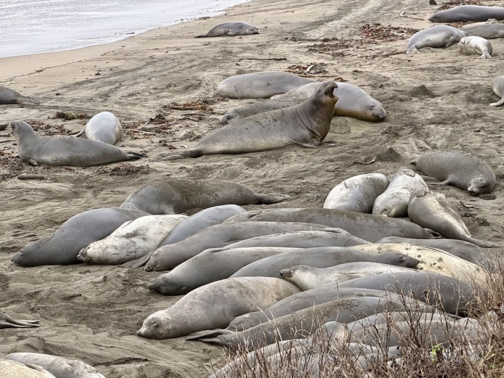 We drove to the Piedras Blancas Light Station on a rainy day and saw the HUGE Elephant Seals at Friend’s of the Elephant Seal in San Simeon. Spoke to a wonderful volunteer and learned about their mating and fighting rituals. It was worth getting wet just to see and “hear” the males showing off and their huge blubbering bodies. They lose so much weight (up to a 1,000lb) during mating since they are not eating – normally they can weigh upwards of 7,000lb. Just amazing. Once again, we thoroughly enjoy talking to volunteers and park rangers – they have so much knowledge and they love sharing.