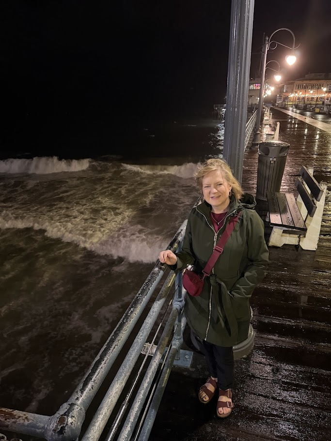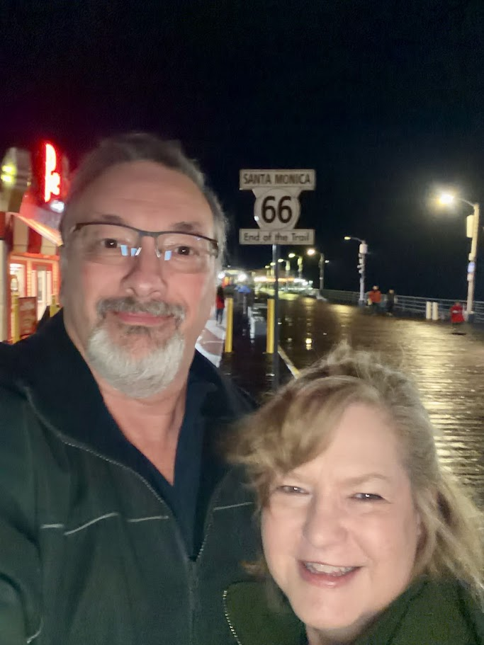 Our last evening in the LA area was for Do-Overs! Two years ago we tried visiting the Santa Monica Pier, with all 3 dogs while driving a dually truck. Our first try at parking right by the pier did not work out – although the attendant on duty said “sure you will fit, no problem!”. Not only could we not park, but almost didn’t make it out of the lot! We found public parking a little further away at the beach. Plus, it was New Year’s day and the pier was so crowded we didn’t feel comfortable taking all the dogs. Santa Monica Pier is the official end of Route 66 – so we had to try again. Imagine our surprise when our Airbnb host on this trip recommended “The Lobster” for my birthday dinner. We could not believe their parking lot is where we tried to park 2 years before! And we loved The Lobster – would highly recommend. Overlooking the pier at night was very special and service was wonderful. And after dinner we finally got to walk on the pier, going to the end and seeing how they fish (with poles) for the spiny lobster there. Very different than lobster pots on the East Coast.